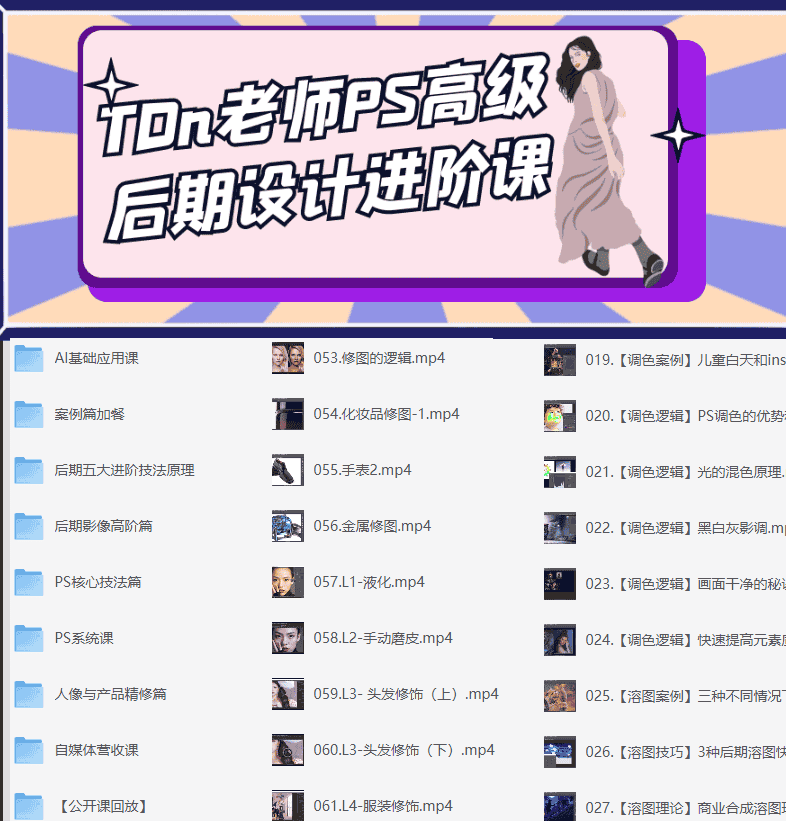 PS高级修图设计课,含有Ai基础、人像精修,自媒体思维营收等~这个课程质量还可以,很多人学PS不就是图一技术变现,提升自己能力嘛!这个课程从入门Ai到作图、修图、变现全方位讲解。