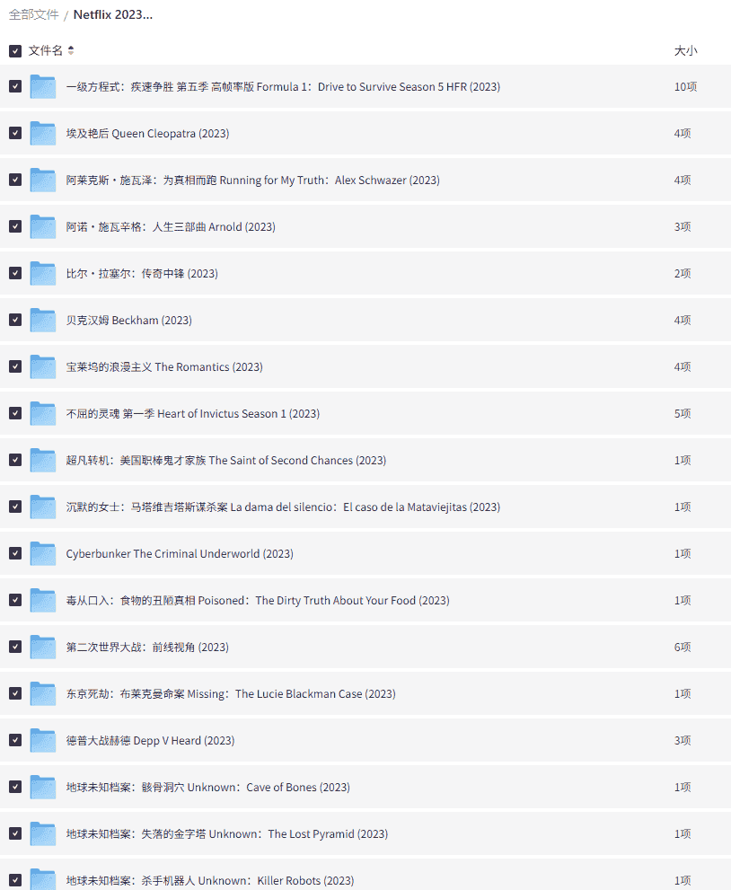 「Netflix 2023年热门纪录片100部(高画质)719G」
