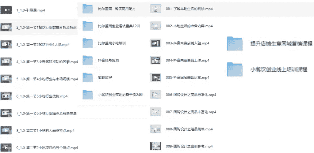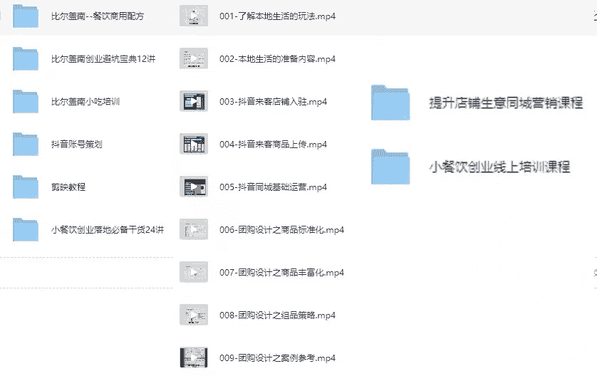 抖音1300w粉丝博主教程《小餐饮创业线上培训课+提升店铺生意同城营销课程+比尔盖兰小吃配方+落地指南》