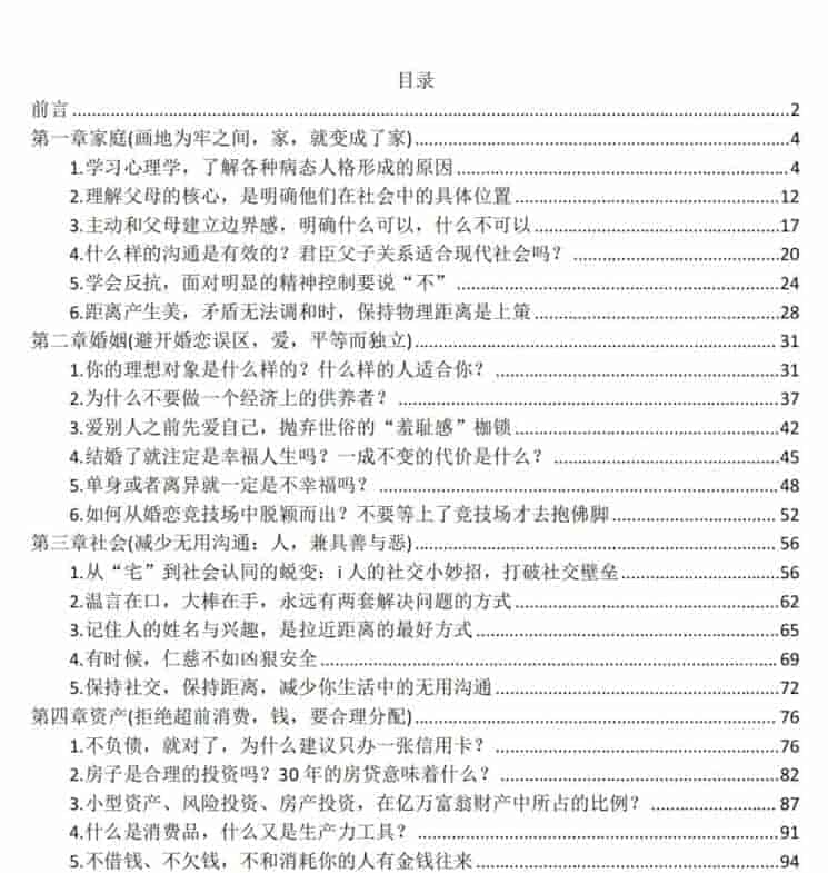 聚焦个人成长的四大核心领域:家庭、婚姻、社交与资产,它不仅提供心理学和人性洞察,更给出实操方法,帮助人们在复杂的人生局面中找到破局之道,活得更自由、更清醒。