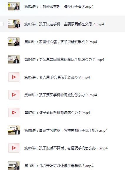 【名校教授】儿童手机成瘾解决方案《30招戒掉手机瘾》视频教程学习资源[1.9G]